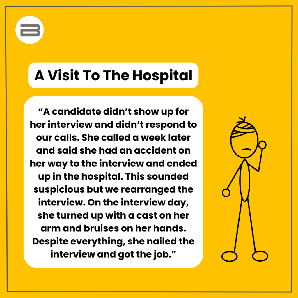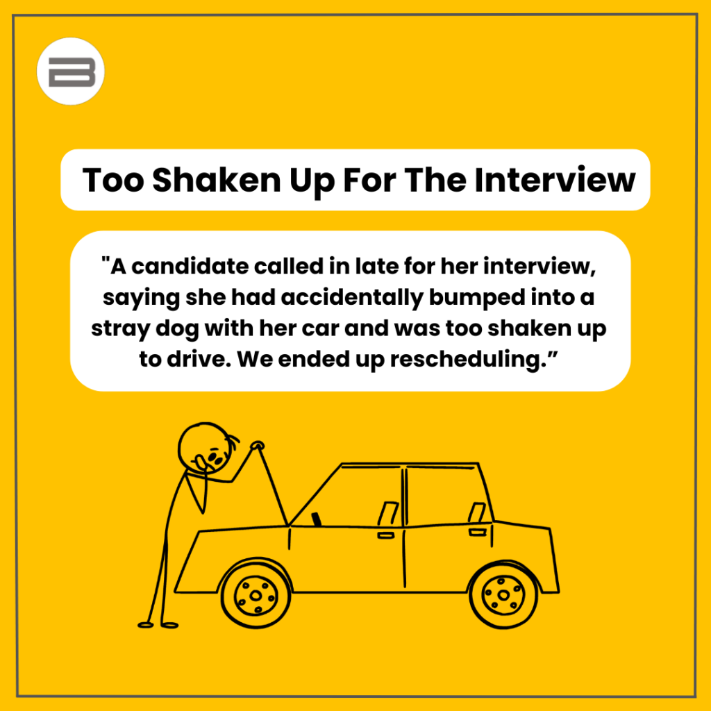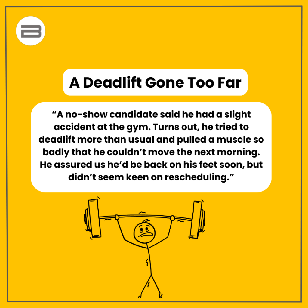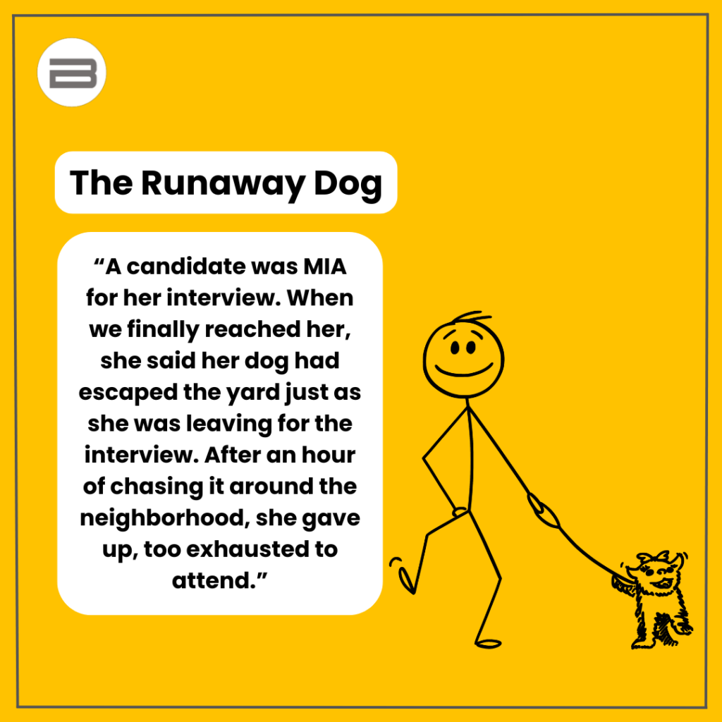 Interviewers have seen it all from wild excuses to creative last-minute cancellations. Sometimes, the reasons are so bizarre, that you can’t help but laugh. We’ve gathered 10 of the strangest, funniest, and downright unbelievable no-show stories interviewers have shared.