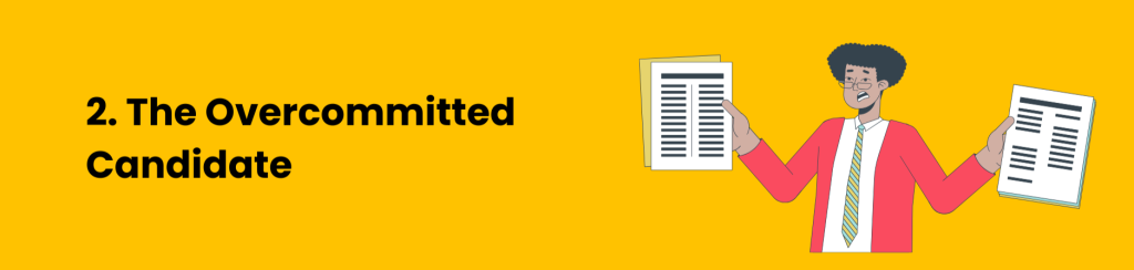 Mark is enthusiastic and willing to take on any task assigned to him. He assures the interviewers that he can handle multiple projects at a time and can manage tight deadlines. But when the interviewers ask him about any example from his previous experience, his answer leaves interviewers doubtful and shows a pattern of missed deadlines and over-promising.